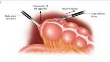 - À l'aide des outils chirurgicaux laparoscopiques, les tissus et les vaisseaux entourant l'appendice sont coupés et attachés.